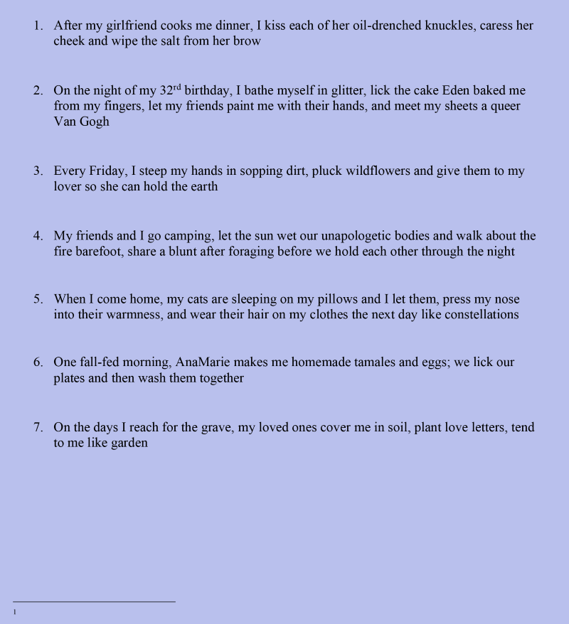 This is What I Know of Filth is a response to Oklahoma Senator Tom Woods’ response to a constituent asking what would be done about the bullying that led to Nex Benedict’s death: “I represent a constituency that doesn’t want that filth in Oklahoma.” The poem is to be printed double-sided and flipped vertically, or held up to a mirror, to read the endnote.