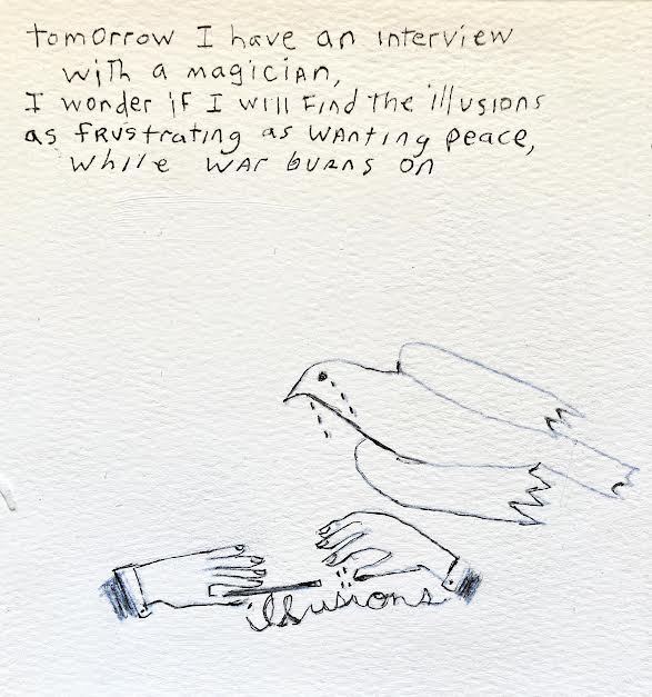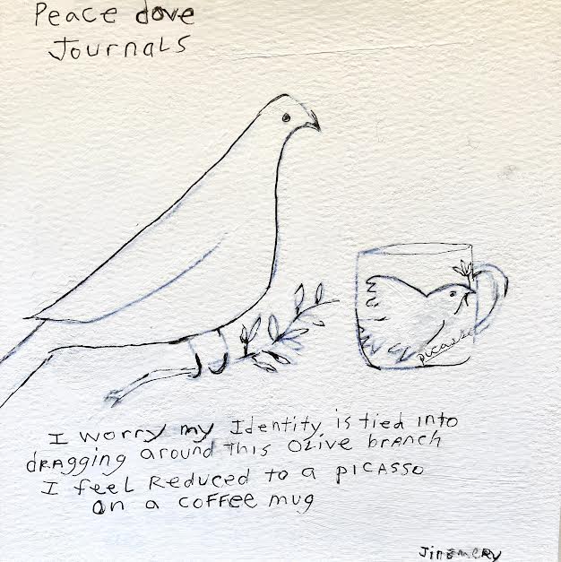 As a folk expressionist she explores themes of life, death, spirit, favorite bands/people and giving voices to animals. Jill says her process through imagination keeps her laughing and gives life to many of her pieces. ‘Lately part of my process in painting has been to think about words in a poetic/symbolic sense its pretty free flowing and completely cathartic. While creating i add layers hoping the feeling is conveyed as a life, cells holding memories, sometimes words or images bleed through as if representing.’
