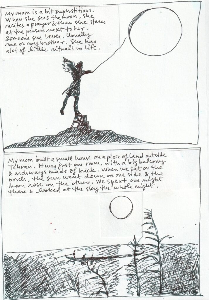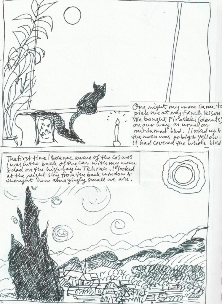 Maryam grew up in Tehran in an artist household. Her father is a renowned filmmaker and her parents worked together on the movie set. Maryam came to NYC to study theater at the age of 20. She then became a nurse and worked 15 years as an ER nurse in many different hospitals in New York. She is now an acupuncturist and polarity practitioner and lives in the Hudson Valley. She practices from home and has a daughter and two cats. Besides writing short stories and drawing, she also loves to hand build cats from clay.