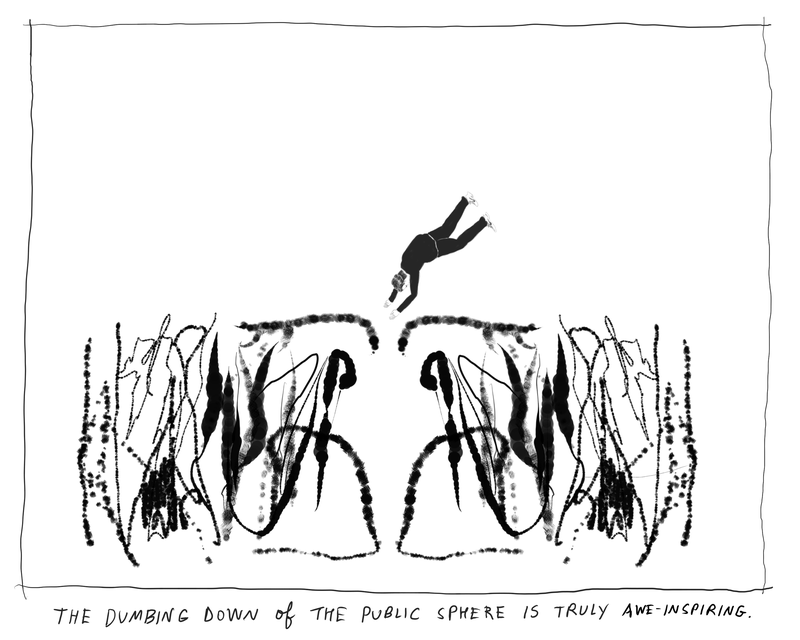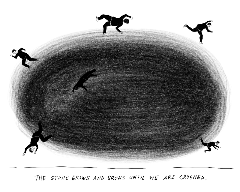 Robyn O’Neil is an acclaimed American artist renowned for her large-scale graphite drawings that explore the human condition through stark landscapes and figures. Her work has been featured in solo and group exhibitions since the late 1990s, including the 2004 Whitney Biennial, and is housed in over fifty museum collections worldwide. For over 10 years, O’Neil has hosted the podcast ME READING STUFF, sharing readings of poetry, literature, essays, and more. This is her first comic. Follow her on Instagram @robyn_oneil. Subscribe to her Substack at robynoneil.substack.com for a chance to receive an original drawing.